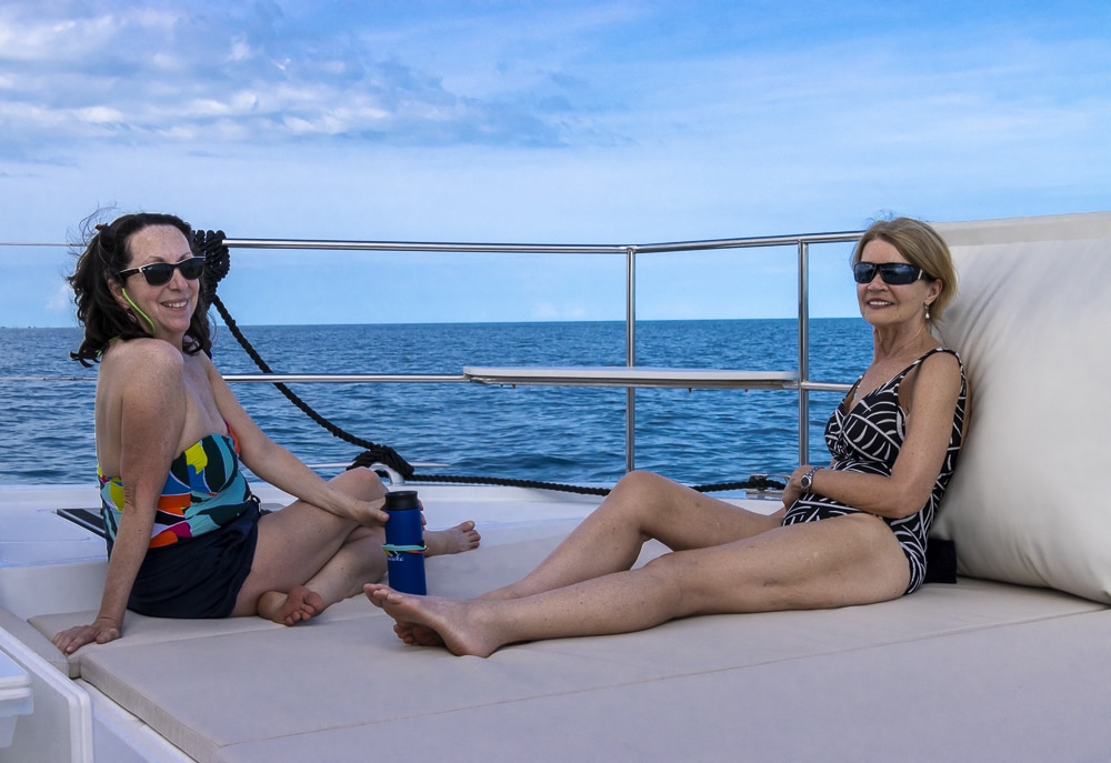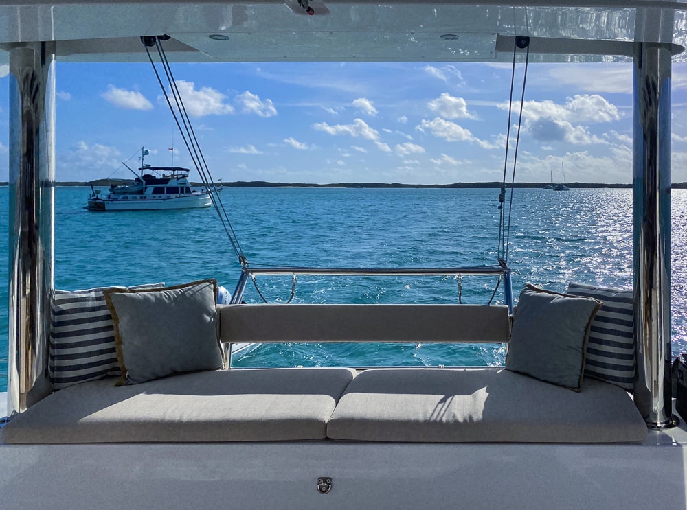 Getting there is half the fun! You’ll enjoy the experience of gliding over the azure waters, while you admire the scenery and the luxurious amenities of the boat. You can spend your time in the flybridge alongside the captain, or you can relax on one of the many comfortable bench seats all around the boat.